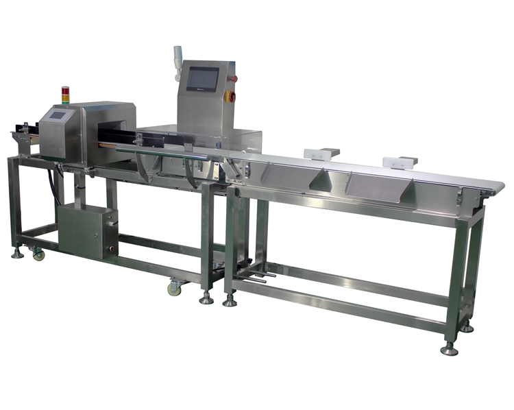 用途:主要用于小包裝干貨等按重量大小分選規(guī)格或等級(jí),適用于企業(yè)流水線產(chǎn)品生產(chǎn)動(dòng)態(tài)稱(chēng)重、產(chǎn)品品質(zhì)重量檢測(cè)及金屬異物檢測(cè),專(zhuān)用于產(chǎn)品整箱缺件、附件缺失以及金屬殘留金屬異物檢查等等,配備自動(dòng)剔除不合格處理分選設(shè)備,前段為金屬超標(biāo)剔除,后段剔除為重量檢測(cè)不合格剔除。