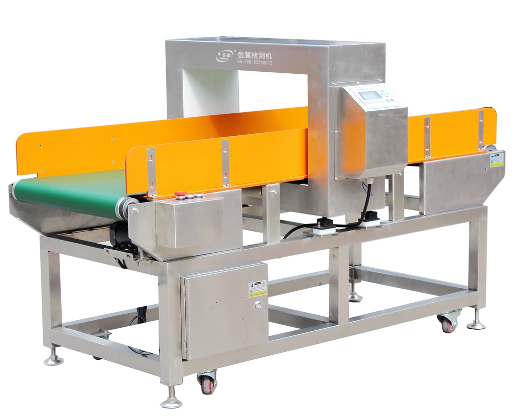 連之新DLM-509Y2010型金屬檢測機使用現(xiàn)場,有金屬的物品可以做到自動檢測并剔除。
