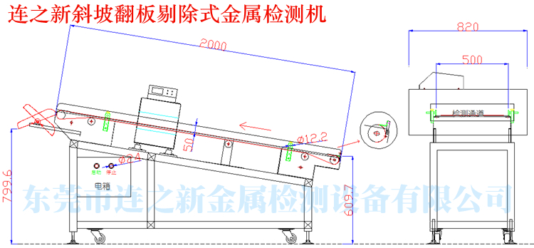 斜坡翻板式食品金屬檢測(cè)機(jī)是一款數(shù)字式金屬檢測(cè)機(jī),能檢測(cè)所有的金屬異物,圖中金檢機(jī)是為一家花生類(lèi)休閑食品生產(chǎn)廠家設(shè)計(jì)制作的金屬檢測(cè)控制單元,用于銜接于炒鍋出冷卻臺(tái)下滑進(jìn)入此金屬檢測(cè)機(jī)進(jìn)行金屬異物管控,節(jié)省人力提升產(chǎn)品質(zhì)量。