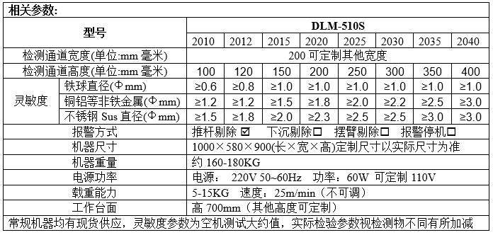 產(chǎn)品名稱:DLM-510S觸屏式全金屬探測機(jī)200系列是一款數(shù)字式金屬檢測機(jī),用于檢測非金屬材質(zhì)瓶裝產(chǎn)品中常見的金屬異物,采用歐美及食品標(biāo)準(zhǔn)設(shè)計(jì),整機(jī)設(shè)計(jì)符合食品機(jī)械要求,適合連接流水線檢測作業(yè)。